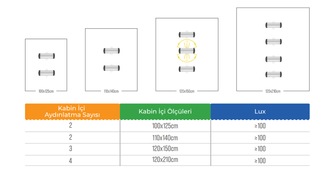 Kabin içi aydınlatma ürünümüzü asansör kabin tavanına yanlarındaki yay sayesinde kolayca takıp kullanabilirsiniz.